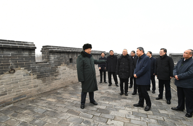 1月26日至27日,,,中共中央总书记、国家主席、中央军委主席习近平来到山西,,,探望慰问下层干部群众。。。。这是27日上午,,,习近平来到平遥古城,,,登上城墙考察。。。。新华社记者 谢环驰 摄